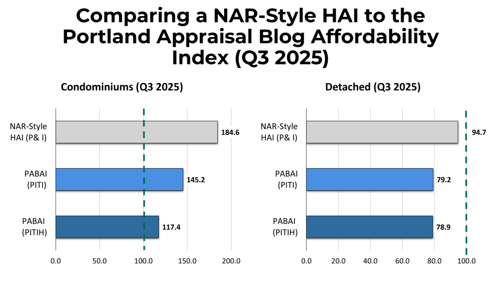 The PABAI derives from Regional Multiple Listing Service (RMLS) closed sales of single-family residential properties—detached homes, attached homes, condominiums, and manufactured homes on owned land—within the Portland Region.